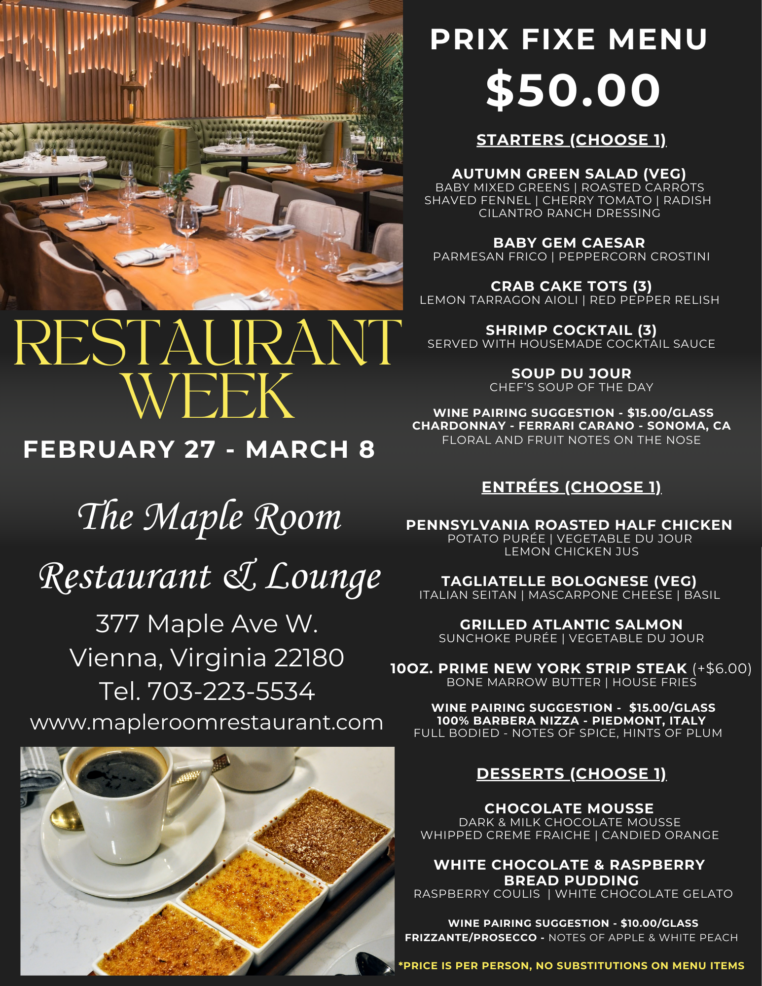 View Special Restaurant Week Menu